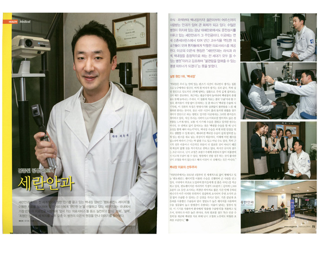 라식·라섹부터 백내장까지! 젊은이부터 어르신까지 사랑받는 안과가 있어 큰 화제가 되고 있다. 수 많은 병원이 위치해 있는 강남 테헤란로에서도 문전성시를 이루고 있는 세란안과가 그 주인공이다. 이곳에는 연세 신촌세브란스에서 10여년간 교수직을 역임한 의료진들이 모여 환자들에게 탁월한 의료서비스를 제공한다. 이곳의 이은석원장은 "세란안과는 라식과 라섹, 백내장을 중점적으로 하는 전 세대가 모두 올 수 있는 병원"이라고 강조하며 "불편함을 없애줄 수 있는 평생 파트너가 되겠다"는 뜻을 밝혔다.