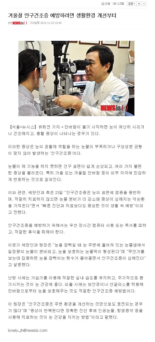 [뉴시스]겨울철 안구건조증 예방하려면 생활환경 개선부터