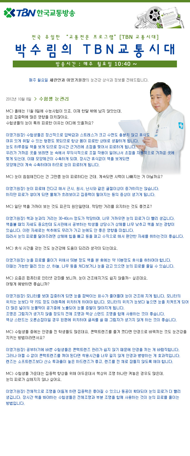 10/08 수험생 눈관리 - 언론보도