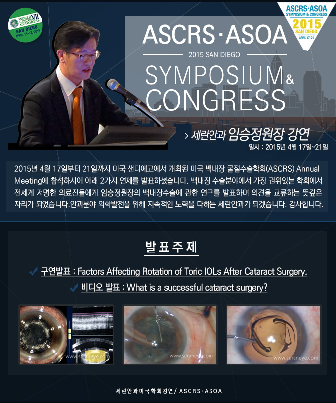 2015 미국백내장굴절수술학회*ASCRS* 발표