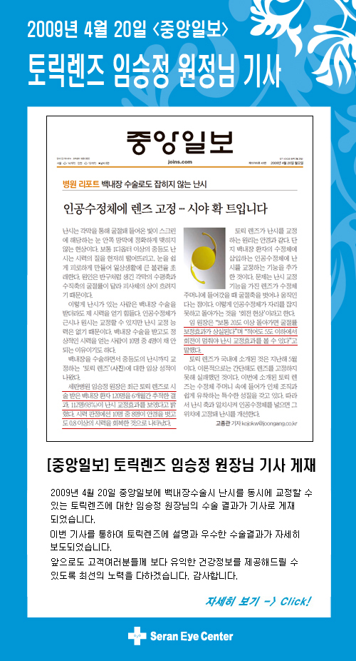 [중앙일보]토릭렌즈 임승정 원장님 기사 게재 - 병원소식