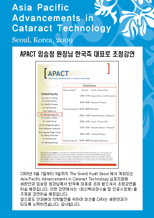 APACT 2009 임승정원장님 초청강연 - 병원소식