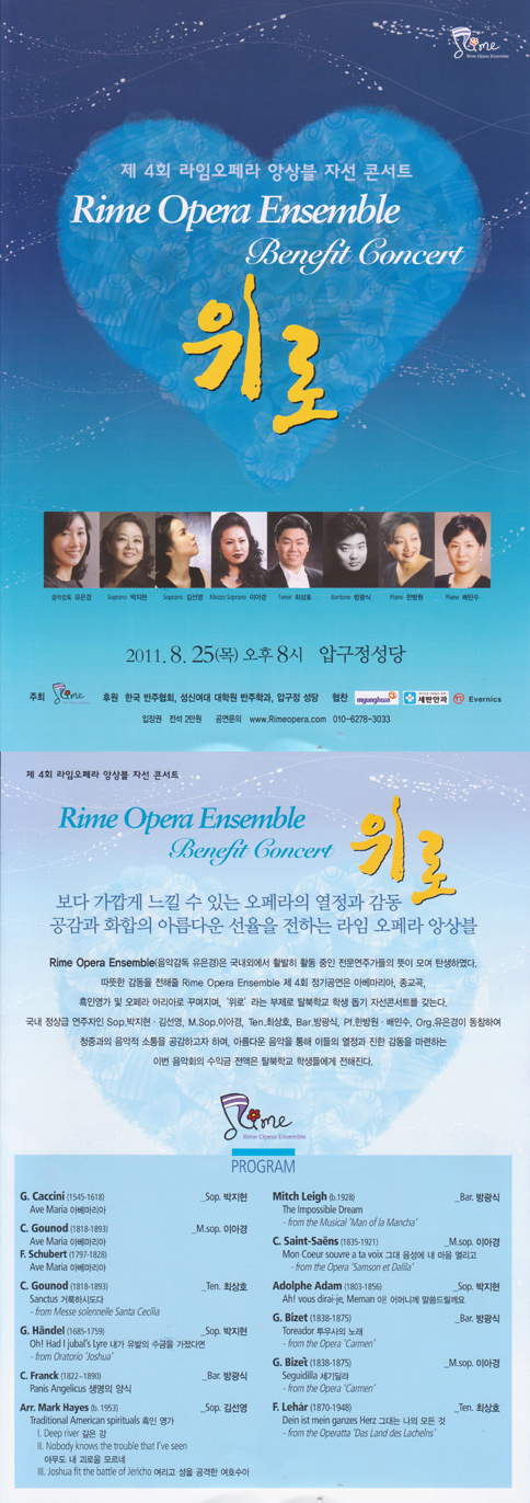 세란안과에서 후원하는 라임오페라 앙상블이 2011. 8. 25(목) 오후 8시에 압구정 성당에서 제 4회 자선콘서트를 개최합니다.여러분의 많은 관심 부탁드립니다.