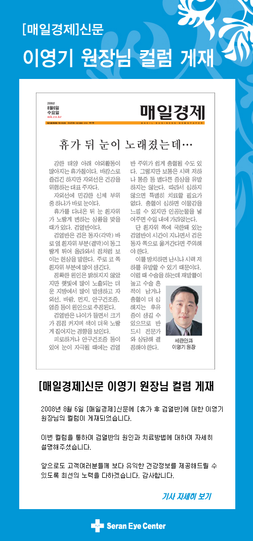 [매일경제] 이영기 원장님 컬럼 게재 - 병원소식