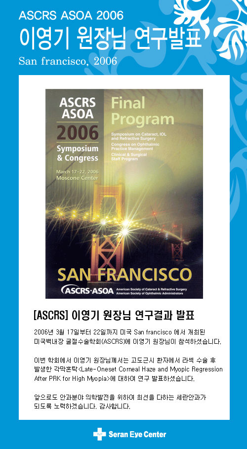 [ASCRS] 이영기 원장님 연구결과 발표 - 병원소식