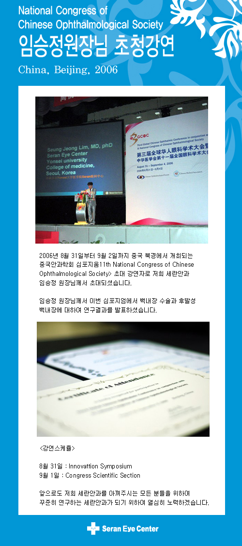 [중국안과학회] 임승정원장님 초청강연 - 병원소식