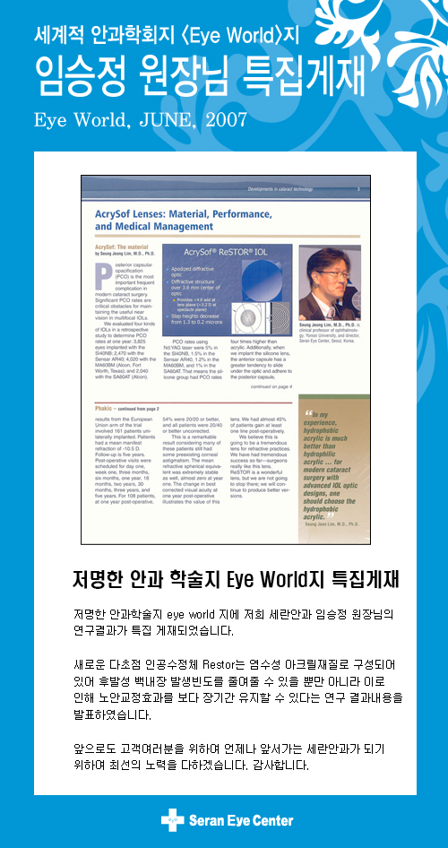[Eye World]지 임승정 원장님 연구결과 특집게재 - 병원소식